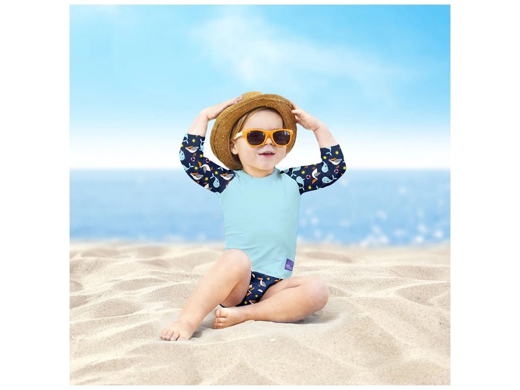 Perfektní UV50+ ochrana pro malé vodomily! Chraňte pokožku dítěte s našim dětským tričkem nice do vody s UV filtrem. Vyrobeno z tkaniny, která poskytuje ochranu proti slunci UPF 50+ pro ta místa na těle, která sluníčko snadno spálí. * Součástí sady jsou i opakovaně použitelné kojenecké plavky, které se snadno používají a jsou dokonalým řešením pro vaše dítě ve vodě, protože s tímto výrobkem není třeba nosit žádné další pleny.