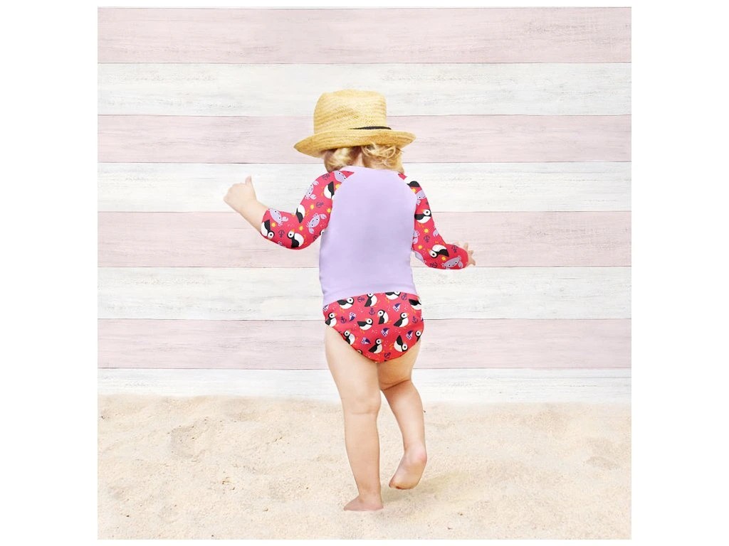 Perfektní UV50+ ochrana pro malé vodomily! Chraňte pokožku dítěte s našim dětským tričkem nice do vody s UV filtrem. Vyrobeno z tkaniny, která poskytuje ochranu proti slunci UPF 50+ pro ta místa na těle, která sluníčko snadno spálí. * Součástí sady jsou i opakovaně použitelné kojenecké plavky, které se snadno používají a jsou dokonalým řešením pro vaše dítě ve vodě, protože s tímto výrobkem není třeba nosit žádné další pleny.