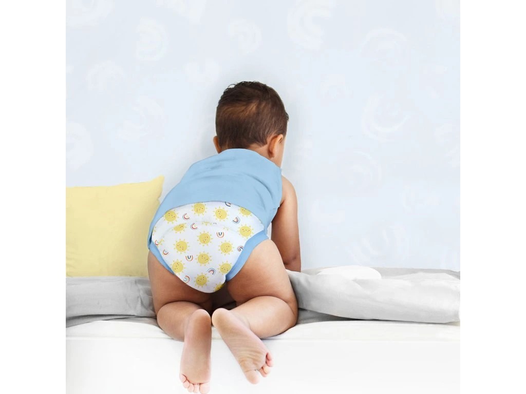 Učící plenkové kalhotky sice obsahují absopční vrstvu, která zachytí menší množství moči, ale nenahrazují plnohodnotně vícevrstvou plenku s kalhotkami. Jsou určeny pro dítě, které již přechází na nočník a občas se mu přihodí nepříjemná příhoda. V učících plenkových kalhotkách vlhkost ihned ucítí, může si ji uvědomit a posadit se na nočník. Učící plenkové kalhotky nedávejte dítěti na noc či na spaní a pokud nemáte jinou možnost vložte do nich ještě další vícevrstvou plenku Bambino Mio nebo Mio Boost, která doplní absorpční kapacitu. Před prvním použitím učící plenkové kalhotky minimálně dvakrát předeperte, zajistíte tím absorpci.